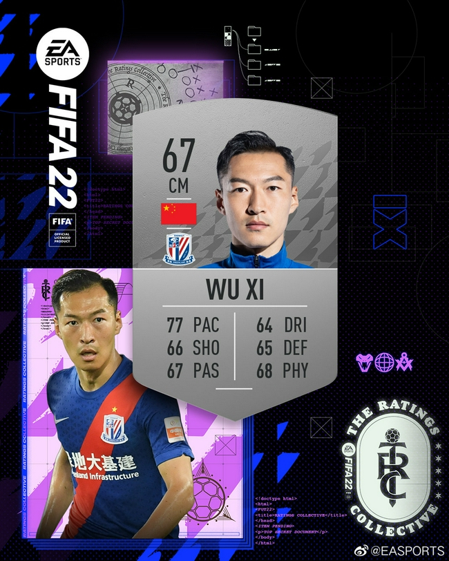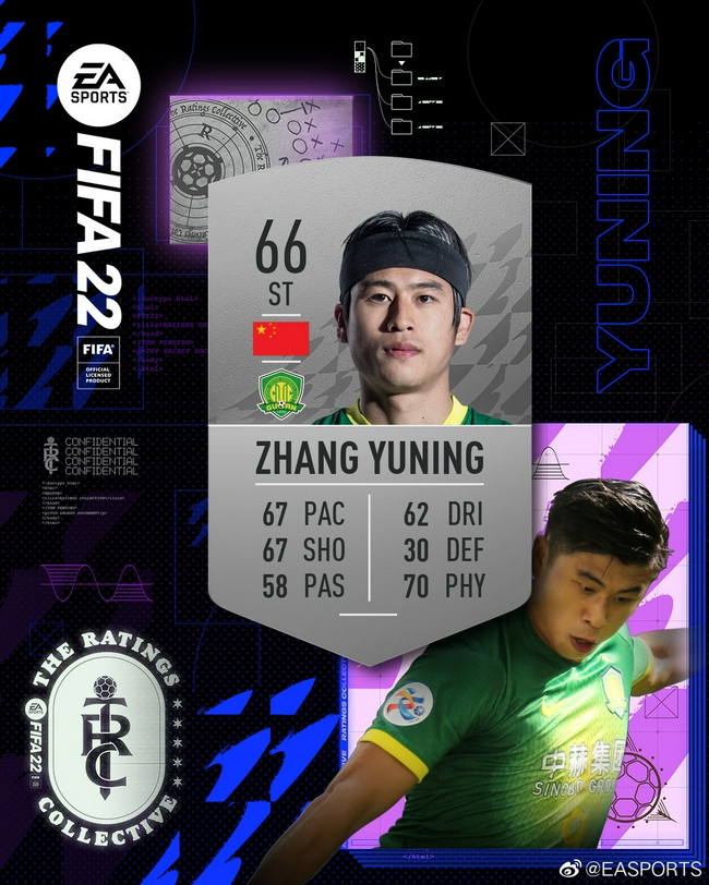 9月18日,EASPORTS官方微博公布了6名中超球员的FIFA22游戏内评分。