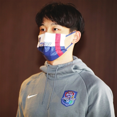 本月2日,男足国家队结束了医学观察隔离,津门虎队的官方社交媒体随后专门发布了“巴顿归队,全员到位”,文字中透着喜悦。转眼,巴顿已经归队3天,昨天上午,他忙里偷闲完成了一项早就定好的任务──戴上俱乐部官方指定的第三款口罩拍摄“定妆照”,为随后口罩作为津门虎俱乐部率先推出的球迷周边产品正式开始线上发售做宣传准备。看到自己照片的“生图”,巴顿说“可以”,开玩笑问他,是不是队里的颜值担当,他说:“太夸张了,我更愿意自己是队里的‘可爱担当’。”