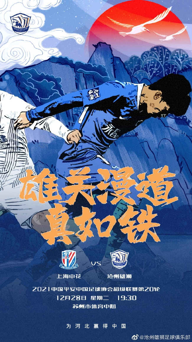 沧州雄狮发布战上海申花海报:雄关漫道真如铁