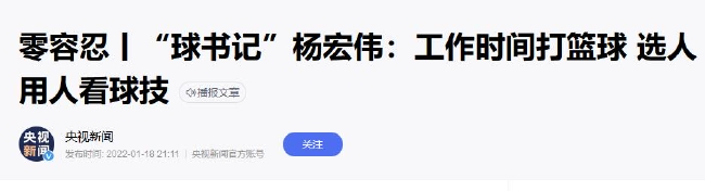据介绍,杨书记爱打篮球,“身边基本上都是篮球运动员,工作调动安排上对这些人高看一眼”,“他招了一批打篮球的人在办公室,他圈子内的人他就用,不管他有没有能力。”