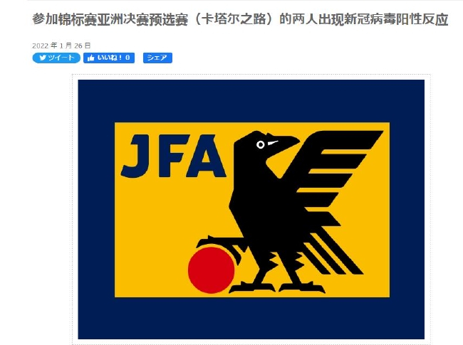日本足协通报:在 1 月 25 日(星期二)的例行检测中,中国国家队下榻酒店的一名安保负责人证实,新冠病毒呈阳性反应。在1月19日(周三)、1月21日(周五)、1月23日(周日)开业前、1月24日(周一)开业后的检测结果为阴性。
