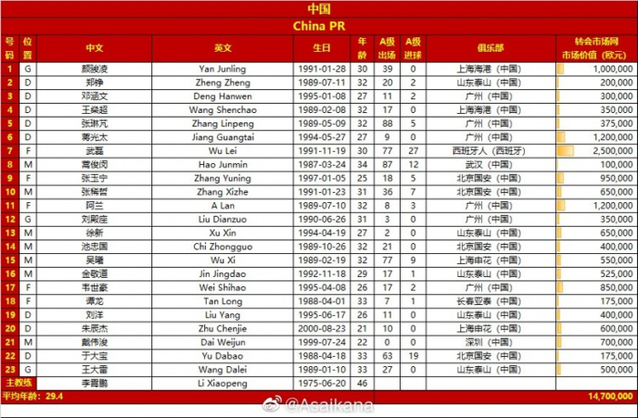 国足战日本23人名单:阿兰戴伟浚在列 洛国富停赛