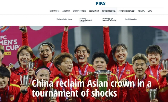 国际足联关注亚洲杯决赛 怒赞中国女足逆转夺冠