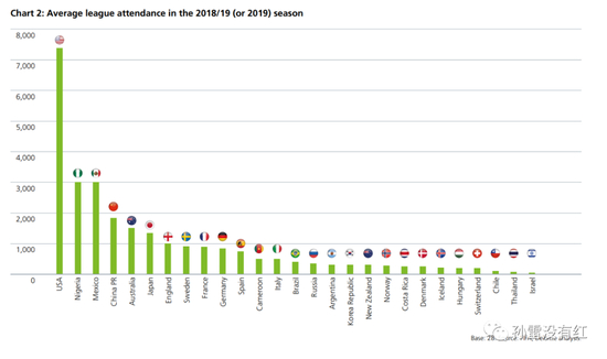 而高赞助率并不等同于高上座率,在场均上座人数上,美国遥遥领先,被许多人吐槽“没人关注”的女超联赛,在2019年的上座为1840人,排在世界第4位。