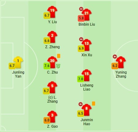 国足球员赛后评分:朱辰杰7.6分最高 于大宝6.5分