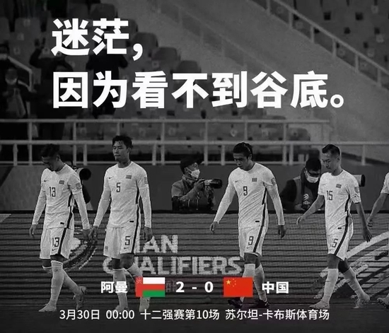 在踢平沙特后,中国球迷普遍认为国足再度进入过往已多次出现的循环状态:一踢无关痛痒的荣誉之战就有不俗表现,能够给大家带来希望。毕竟对于这场性质类似、对手阿曼要明显弱于沙特的收官战,大多数球迷还是乐观看待,即便赢不了最差也应该是隔平局吧……没想到这一次中国男足再度用实际行动啪啪打了球迷的脸,又一次刷新了下限,咱2球告负,且全场没有一脚射正,相当于没有给阿曼制造过哪怕1次实质性威胁,真是悲哀、沮丧啊!看来现如今中国男足连没有一丝压力的荣誉之战都拿不出该有的表现了,踢得浑浑噩噩漫无目的,眼下连在这样的对决中都看不到未来与希望了,咱对中国足球还能指望些啥?