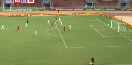 第74分钟,中国队后防线中路出现大空当,叶海亚直塞,法瓦兹中路大单刀突入禁区推射破门,阿曼2比0中国。