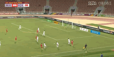第9分钟,阿曼右路超车刘洋倒三角回敲,叶海亚劲射击中横梁,中国队躲过一劫。