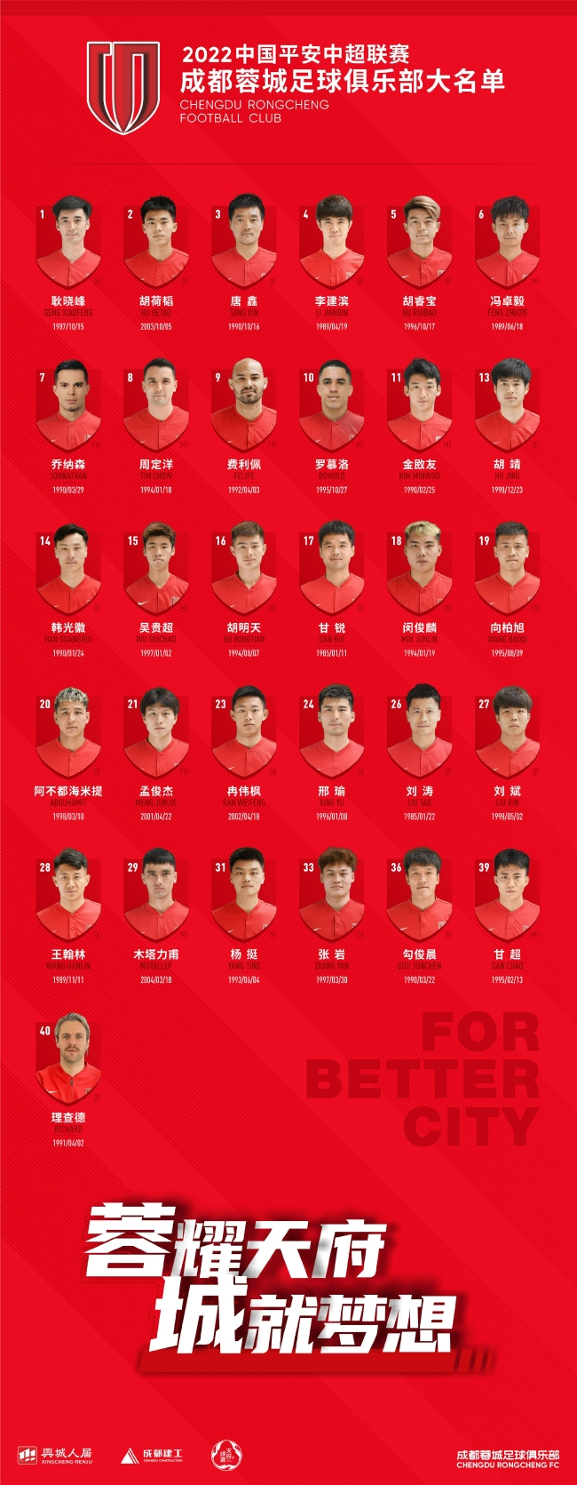 5月11日,中超升班马成都蓉城队于今日公布了球队新赛季的大名单,共计31名球员,其中包括乔纳森等5名外援。