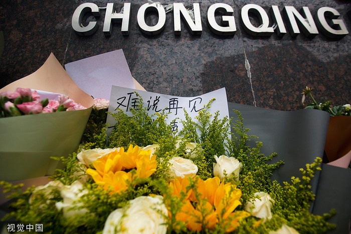 重庆俱乐部门口摆满了献花。