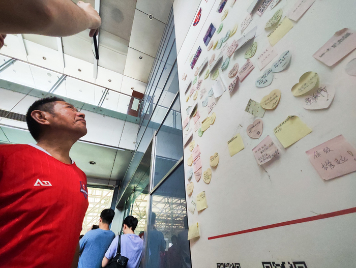 球迷看着墙上的贴纸,感慨万千。