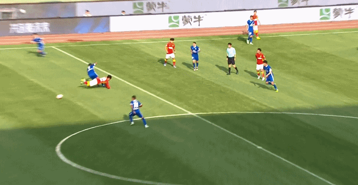 第65分钟,武汉三镇队在前场逼抢获得反击机会,11号戴维森中场带球直奔对方禁区,12号张晓彬后插上接戴维森传递后右脚推射破门,武汉三镇队4比0领先广州队。