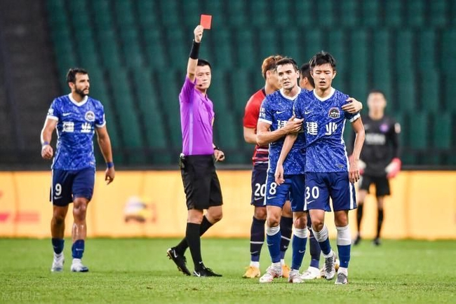 钟晋宝双脚离地飞铲刘洋 主裁判出示直红将其罚下