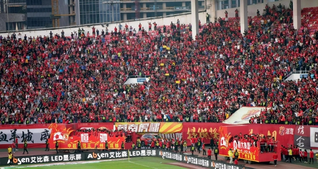 在比赛结束后的球场内,庆祝夺冠的广州恒大拉出了这条让人记忆犹新的标语: