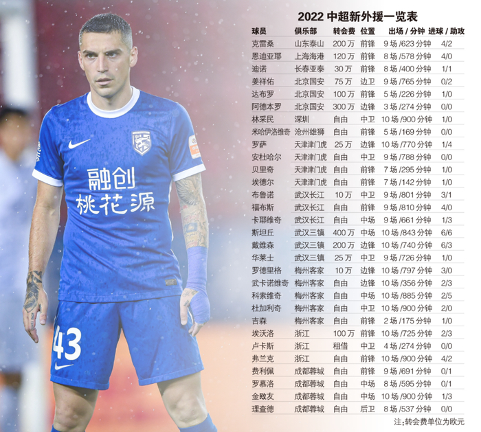 另一支升班马梅州客家12个进球4名外援包办9个,3名塞尔维亚和黑山外援都是零身价、自由身加盟,性价比堪称中超第一阶段最佳。