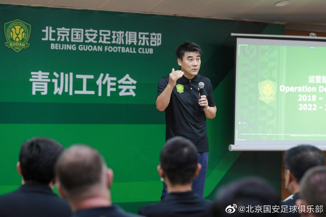 青训工作会中,俱乐部总经理李明以及青训外籍团队回顾了2018年以来国安青训的发展成果。4年时间,国安青训完成组织构架和青训体系搭建,建立了完备的青训梯队建制,目前国安青训体系已经拥有统一的技战术理念、统一的工作流程和统一的规划。青训团队通过这些统一的理念,完成了国安青训大纲的编写,目前已经成书的青训大纲(成功之路)包括:国安青训指导手册、组织和流程手册、技术训练手册、守门员训练手册、运动表现训练手册、菁英球员训练手册和球探手册。