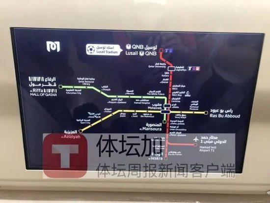 因为笔者不了解自己下榻的酒店是哪一站,所以先询问了志愿人员。其告诉笔者:下回出门前应该先下载一个多哈地铁APP,这样,去哪里都可以直接检索。随后,帮笔者检索到酒店后,告诉笔者应该在哪一站下车。于是,笔者便直接登上了地铁。由于卢塞尔站是终点站,所以也无需询问具体的方向。