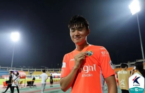 有倒霉蛋,当然也有幸运儿,他就是金大元的江原队友、20岁的梁泫俊,来自釜山的他8球4助,去年刚刚从釜山高中毕业,一度随江原B队征战第4级别联赛,今年第一次打K联赛就脱颖而出。7月时,梁泫俊成功入选K联赛精英队,与孙兴慜领衔的热刺打了一场热身赛,表现抢眼。