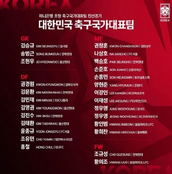 记者寒冰报道 9月13日,韩国队主帅本托公布了9月热身赛大名单,这是韩国队世界杯前最后的“模拟考”,26人名单中的绝大多数,都将拿到卡塔尔机票,李刚仁时隔18个月重新入选,孙准浩这次也在名单中,而李升祐和金大元落选,也引发了争议。
