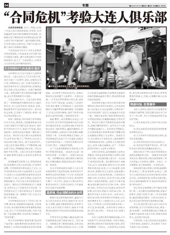 根据目前记者掌握的资料,童磊与大连人俱乐部的合同将在2022年的12月31日到期,童磊不愿意再续约;单欢欢与大连人俱乐部的合同将在2024年中到期;林良铭和吴伟的合同应该都是到2025年初。