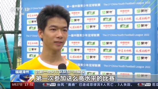 合肥一中U17队队员 洪展程:第一次参加这么高水平的比赛,看见了许多强劲的对手,然后也能向他们学习更多的东西来提升自己,也感谢对手带给我们这么好的一个体验。