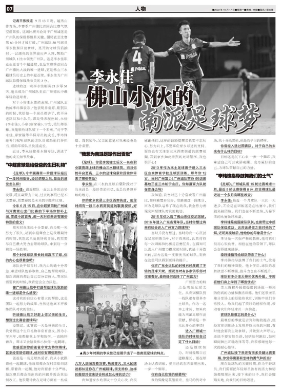 ◆《足球》:你是李营健之后又一名在职业联赛踢上球的佛山三水籍球员,而且你的平台更高,三水的足球启蒙阶段给你带来了哪些帮助?