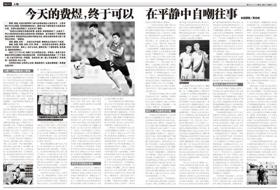 “我看过《足球》写商隐的故事,说真的,我都被感动了,太励志了。所以当我得知你也要采访我的时候,我很激动。我可能做不了商隐那种励志的榜样,那我就用我足球的辛酸血泪史,给想出国的球员们起个预警的作用吧。”费煜说。