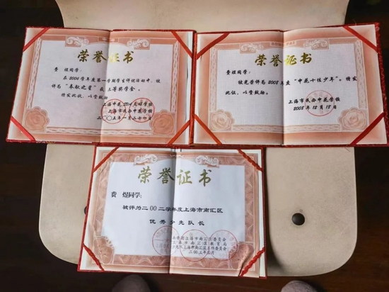 后来,费煜在申花足校的每一年都拿到了奖学金,他的英语成绩出色,还是学校的大队长,获得过区优秀学校干部等荣誉。这些获奖证书费煜妈妈都一直如珍似宝地保存着,遗憾的是那份“三个必须做到”的协议却因为搬家而找不到了。