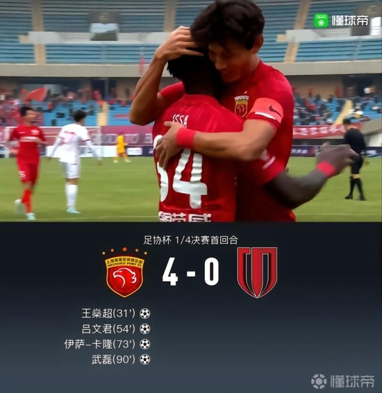 1月5日,这场足协杯四分之一决赛首回合较量,由于成都蓉城派遣全华班甚至大多数是U21年轻球员,比赛结果有些缺乏悬念。最终,依靠外援卡隆的精彩表现,上海海港队以4比0轻松赢球,为晋级四强打下基础。
