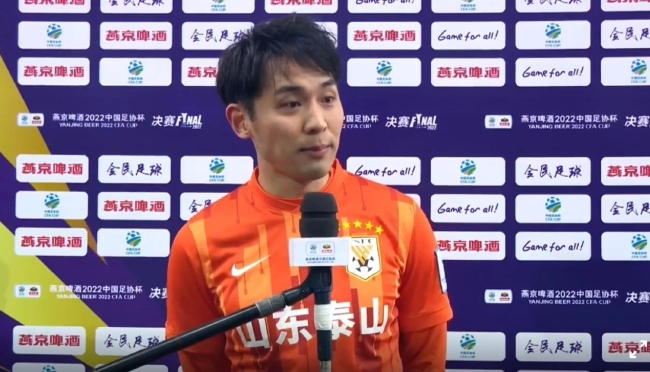 1月15日,2022中国足协杯决赛在苏州奥体中心上演,山东泰山队2比1逆转浙江队,成功卫冕足协杯冠军。赛后,山东泰山队球员吴兴涵接受了媒体瞬采。