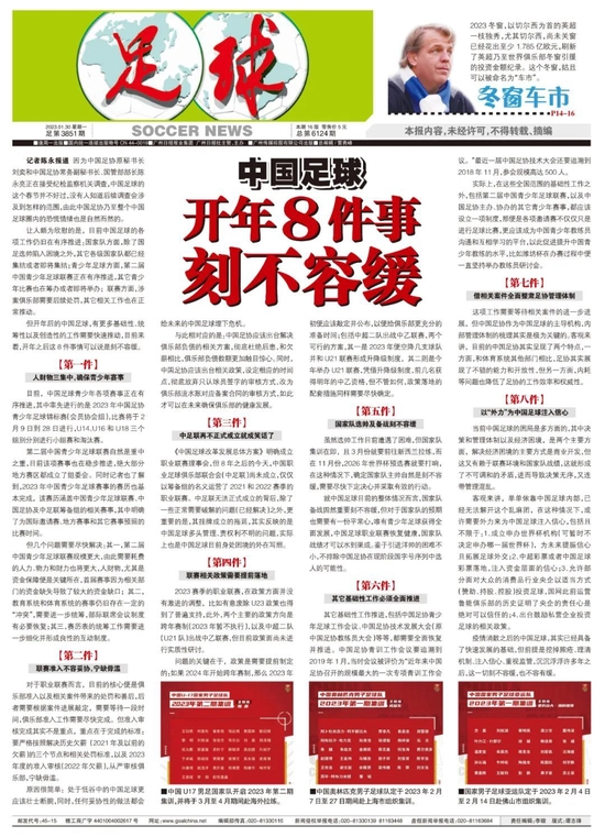足球报:中国足球开年8件事刻不容缓