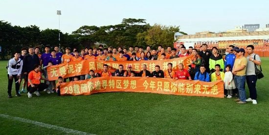 数十名球迷远道而来观看了昨天的比赛,并在场边拉起了横幅鼓励球队。赛后,球迷纷纷上前寻找深足球员合影、签名。