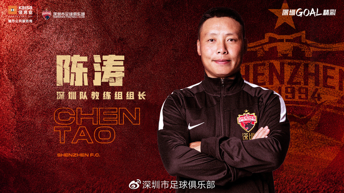 深圳队官宣:陈涛任教练组组长 关震守门员教练