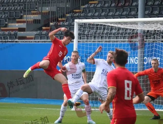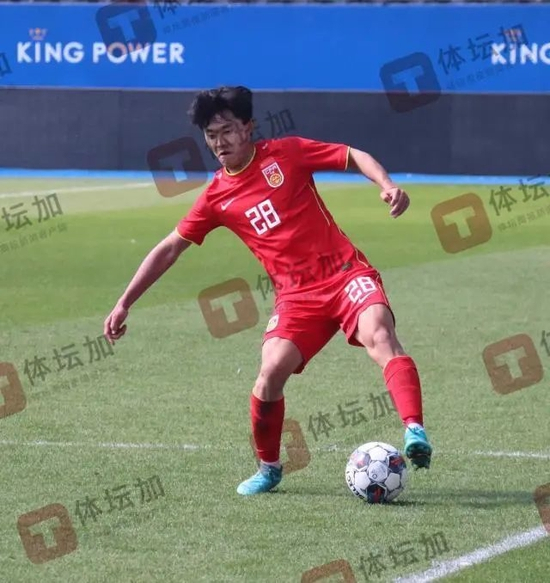 第38分钟时,国奥队在中场左侧实施抢断成功,并直接就地发起长传反击,将球准确地传到了9号赵健博脚下。后者带球杀入禁区,形成单刀机会,创造出了国奥队上半时最好的得分机会,但可惜一脚射门打飞,遗憾地错失了领先的机会。