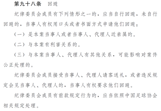 此外,由于我俱乐部自始未被通知相关纪律处罚程序的开始、进行直至结束,亦未被给予机会参与该程序并行使FIFA及中国足协章程、《纪律准则》赋予的合法权利,我俱乐部自然无从得知作出足纪字[2023]37号处罚决定的纪律委员组成,也就无从对纪律处罚决定者的资质进行审查并根据《纪律准则》第九十八条申请利益相关者回避。