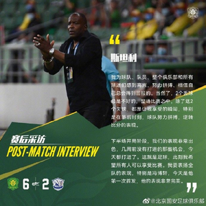 “下半场开局阶段,我们的表现非常出色,几周前没有打进的那些机会,今天都打进了。这就是足球,此刻我希望所有人可以享受比赛。我要表扬全队的表现,特别是冯博轩,今天是他第一次首发,他的表现非常完美。”