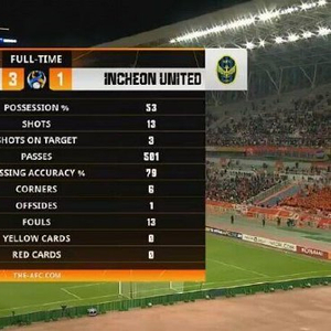 泰山vs仁川联全场数据:泰山4次射正打进3球