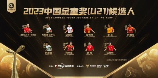 U17金童奖的评选竞争激烈,候选人的重要考量因素是国少队的表现。进入去年U17金童奖前三名的王钰栋在U17亚洲杯赛中攻入3球,是队内进球最多的球员。他还以16岁9个月零3天的年纪创造了中超联赛历史最年轻的出场纪录。U15国家队力夺东亚杯冠军,共同效力广州队的张洪福和杨黔东居功至伟,二人在U15职业俱乐部联赛中也取得了优异成绩,和他们一起入围候选名单的还有U15职业俱乐部联赛冠军队成员、赛事MVP魏祥鑫。山东泰山夺得U19中青赛冠军,跨年龄参赛的王昊斌和梅帅军都是重要成员,加上U17亚洲杯上的不错表现,他们也一起入选了2023中国金童奖U17组别的候选人名单。这个奖项的候选人还有学青会U18组银靴蒯纪闻、学青会U16组金靴杨展彭和刷新中超最年轻进球纪录的夏合扎提·吾加合买提。东亚青年运动会女足银牌获得者、中国队内最佳射手刘泽玉成为了U17金童候选人中的唯一女将。