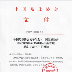 2024年上班第二天,中国足球协会下发了《足球字2024-3号文件》,名为《中国足球协会职业联赛俱乐部和球队名称管理规定(试行)》的通知。