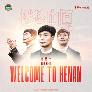 欢迎南基一先生执教河南队,期待南基一带领球队在俱乐部成立30周年之际再创佳绩,为胜利而超越!