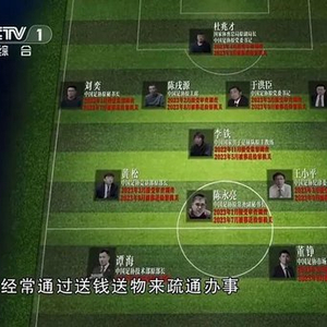 专题片通过国家体育总局原副局长、中国足球协会原党委书记杜兆才,中国足球协会原主席陈戌源,中国国家男子足球队原主教练李铁等,披露了足球领域系统性、塌方式腐败。(相关报道:签6000万元“合同”选四名球员进国家队,李铁案详情→)