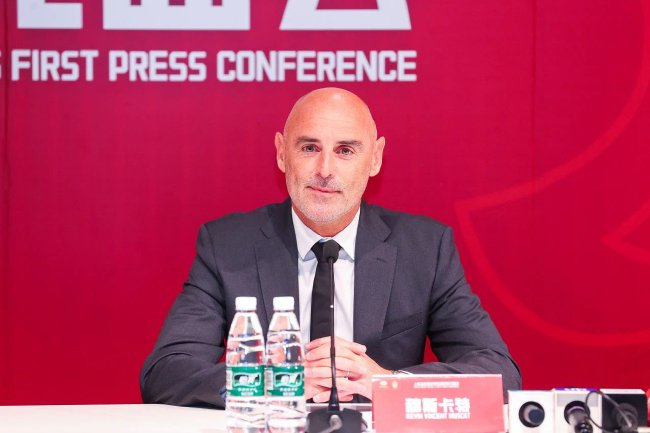穆斯卡特:大家也看到了我们团队的成员,包括之前的一些成员,也有一些新的成员。助理教练阿洛伊西、文森佐·伊拉多,孙总也加入教练组担任助教,我们的运动表现主管格雷戈,文森佐会担任技术分析。当然还有我们的门将教练沃克,在上海待了10年之久了,以及我非常尊重的把我们的医疗主管科蒂介绍出来,他有非常丰富的保障经验。还有非常重要的成员,过去几个月有了非常好的交流,就是我们的球队经理王恩慧先生,以及我们的翻译。