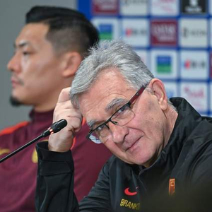 国足主帅伊万科维奇出席赛前的记者会