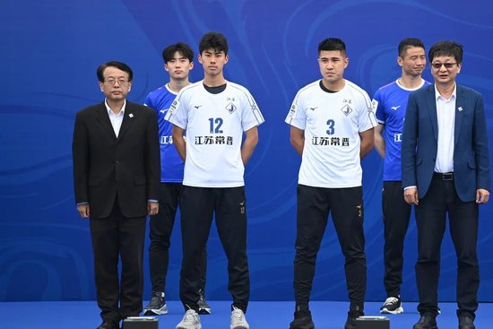 本次出征仪式上,江苏常晋足球俱乐部2026赛季主客场比赛服惊艳亮相。主队队服以蓝色为主色调,象征着江苏常晋将士如大海般深邃的底蕴与天空般高远的志向。客队白色队服象征着纯粹坚定的初心,沉静自持又灵动果敢,既能秉持冷静理智的战术判断,又能保持一往无前的拼搏锐气。以从容之心破局、以沉稳之姿攻坚,主客场比赛服寓意着球队用纯粹的竞技精神书写每一场对决的精彩。