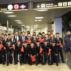 九月初的北京刚下过一场大雨,已经能感觉到丝丝凉意,而远在地球另一边的西班牙却依然骄阳似火,用她的热情迎接来自中国的足球少年。尽管旅途很辛苦,但队员们走下飞机时依然个个精神抖擞,当他们身着帅气的西装、手拿小国旗整齐地出现在马德里机场的那一刻,立即成为了当天一道亮丽的风景。