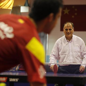 西甲主席与西班牙乒乓球队国家队队员进行友谊比赛