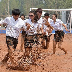 体验日上午,出现了不少熟悉的身影报名参加泥浆足球体验赛,最吸引人眼球的就是前日参加过正装赛的都市白领。前日的正装赛他们在站台上观望,因天热迟迟不愿出来。看到现场的其他参赛队员在泥浆池里踢得酣畅淋漓,他们也按捺不住当场穿着正装跳入泥浆池,碍于服装放不开手脚。比赛进行不到十分钟,她们被现场氛围感染,有的还脱掉了口罩在泥浆体验池里尽情奔跑。在比赛间隙,她们“玩心大发”,特意将泥浆涂抹在身上和脸上。赛后他们看到青春靓丽的参赛照非常惊喜,也引起了广泛的关注,许多上班族因此前来体验。在此次体验日的比赛上,他们专程换上了专业队服,准备好好享受泥浆足球。体验赛后,现场的减压游戏撕名牌大战也十分受白领欢迎。本场游戏准备了丰厚的大礼,参与人员都非常激烈。在泥浆体验池里奔跑,嬉笑,打闹,赢礼品……现场氛围十分高涨。