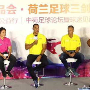 当日下午,“荷兰三剑客”与中国足球名宿们来到唯品大学,开展了一场别开生面的中荷足球高峰论坛暨球迷见面会。在本次“中荷足球论坛”上,“荷兰三剑客”与两大广州本土标志球星彭伟国、胡志军畅谈中荷足球,相互交流荷兰足球的青训经验。“三剑客”在对中国足球的改革、中国国家队发展、中超联赛建设、青训培养等多个方面给出自己的宝贵建议。随后,三剑客们与现场观众进行了互动游戏,更亲自为获奖者颁赠精美纪念品。 荷兰荣石体育长期向中国足球青训界推广荷兰全攻全守的足球理念。主席罗强介绍:“我们致力于为中国的足球发展打造海外平台,能成为欧洲与中国之间体育产业沟通的桥梁。这次促成荷兰三剑客广州足球公益行,除了希望让跟多中国球迷一睹巨星风采,是希望中国足球发展能更加的全面,我们也全力支持有条件、有天赋的青少年走出国门,到荷兰、比利时等欧洲足球强国留学,接受欧洲足球的熏陶。”