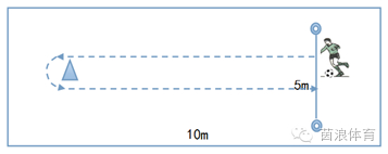 测试方法:听测评员口令后,从起始线开始快速运球,绕过距离起始线10米处的标志桶后运球返回,以脚踩球于起始线上结束。