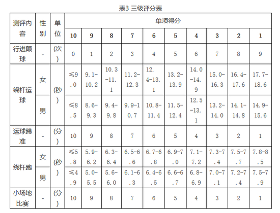 教育部印发《学生足球运动技能等级评定标准(试行)》